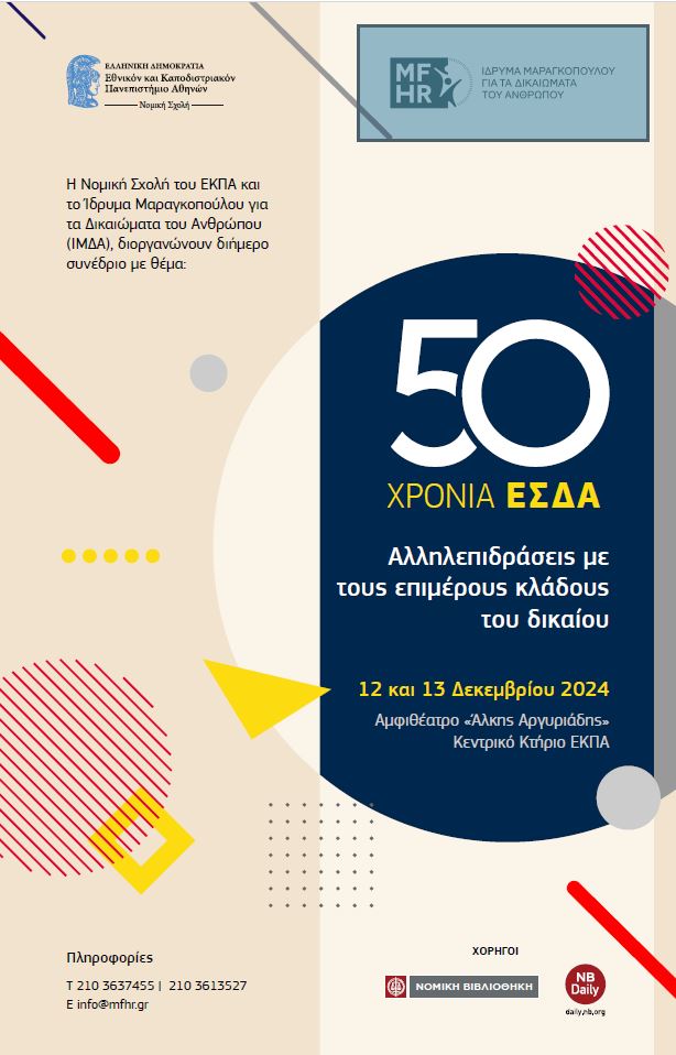 50 Χρόνια ΕΣΔΑ. Αλληλεπιδράσεις με τους επιμέρους κλάδους του δικαίου [12-13/12/2024]