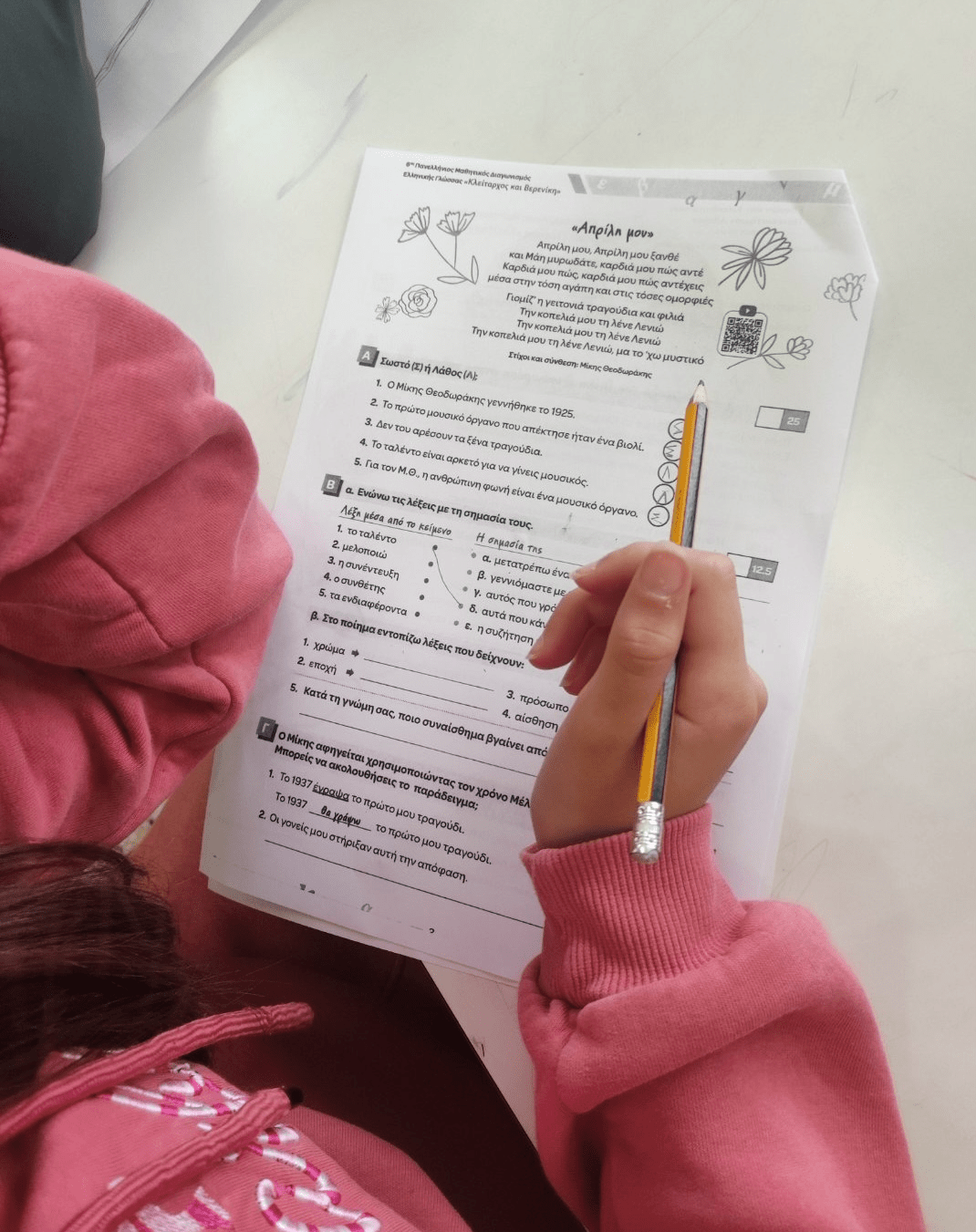 Με πολύ μεγάλη συμμετοχή μαθητών/μαθητριών Ε’ και ΣΤ’ Δημοτικού πραγματοποιήθηκε τη Δευτέρα, 7 Απριλίου 2025, για 6η συνεχή χρονιά, ο σχολικός διαγωνισμός για τη Νέα Ελληνική Γλώσσα «ΚΛΕΙΤΑΡΧΟΣ & ΒΕΡΕΝΙΚΗ» με φετινό θέμα τη Μουσική και τον εορτασμό των 100 χρόνων από τη γέννηση του Μίκη Θεοδωράκη.