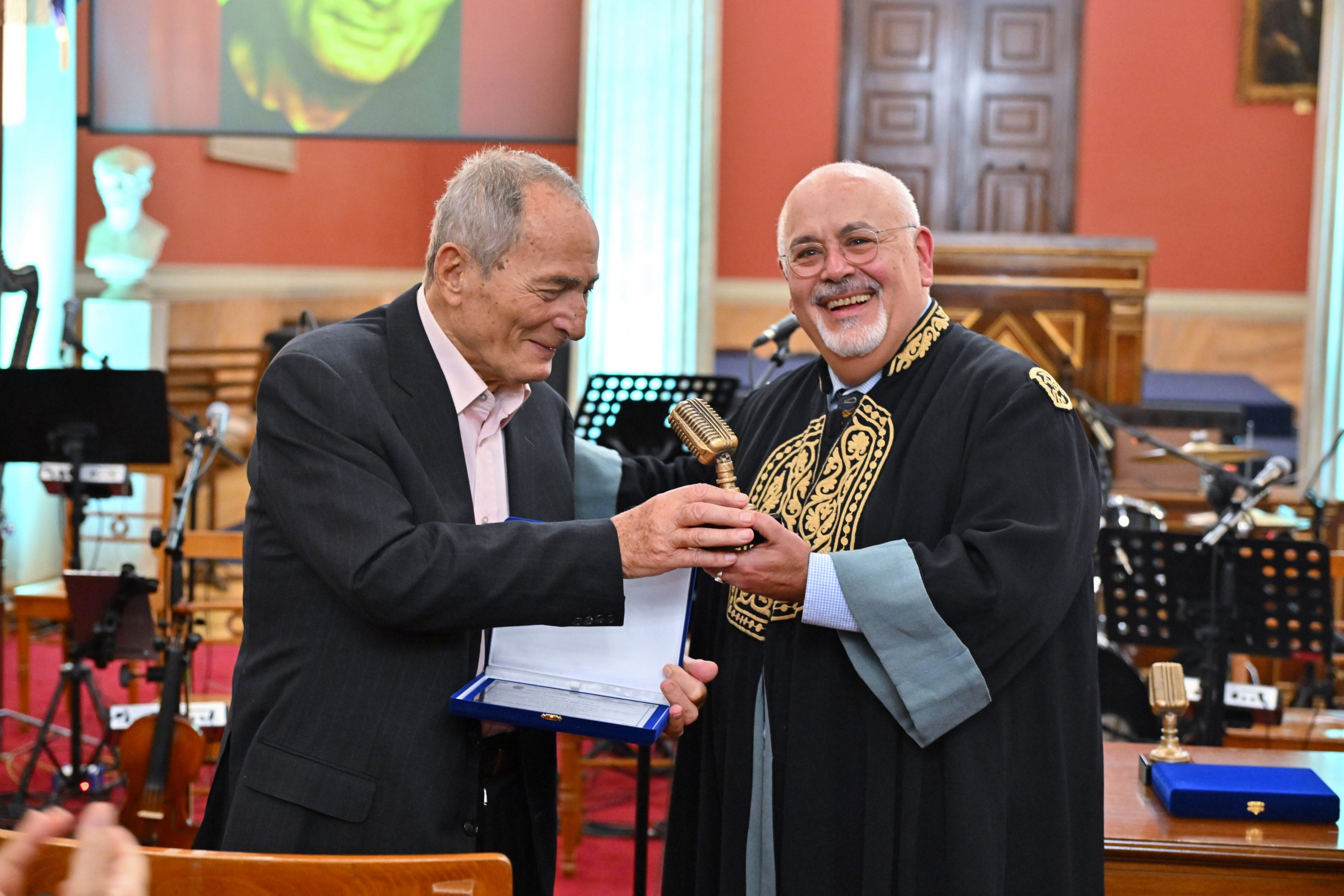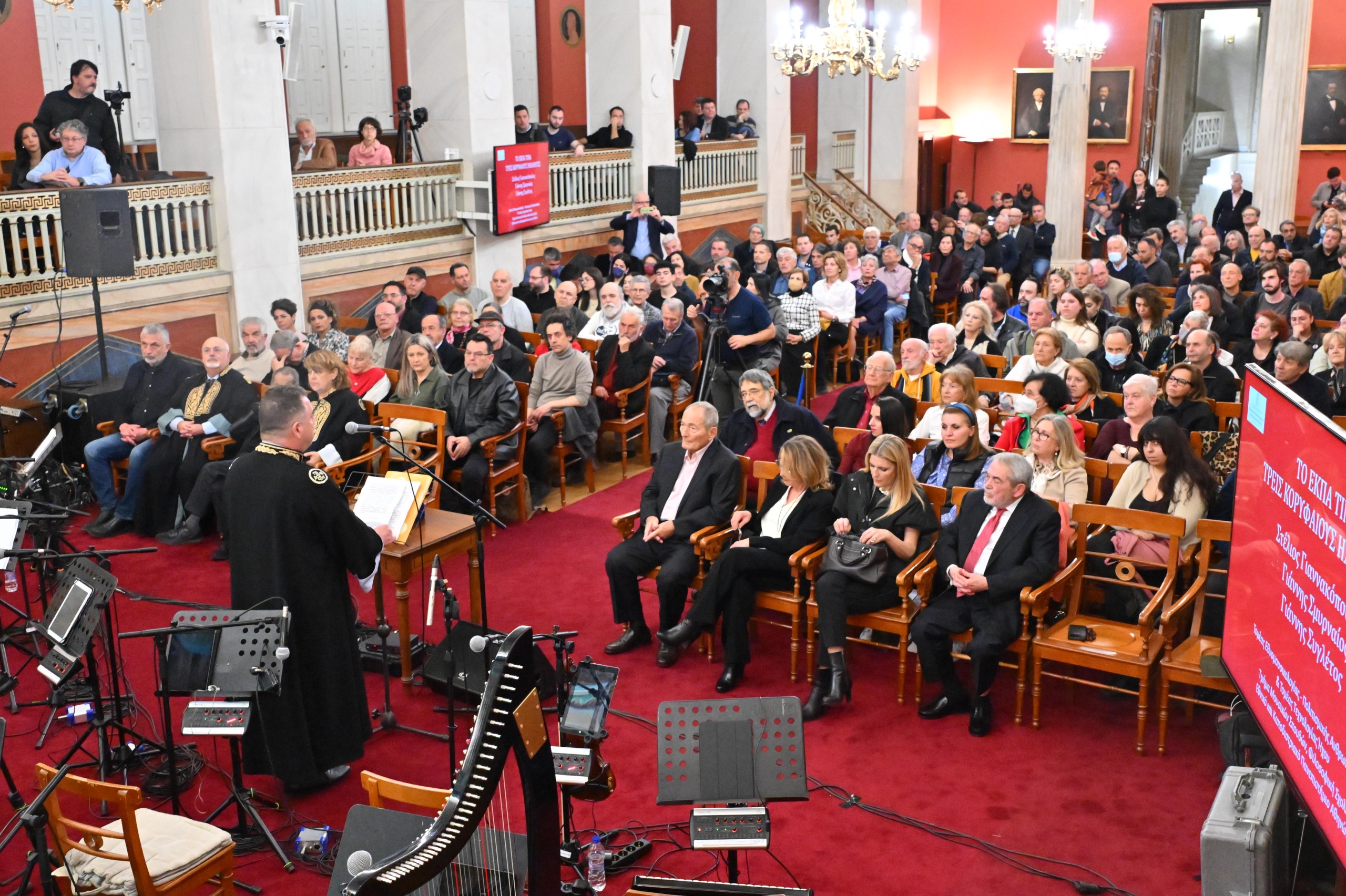 Στην εκδήλωση παρέστη και ο συνθέτης και μαέστρος κ. Σταύρος Ξαρχάκος, Επίτιμος Διδάκτορας του Τμήματος Μουσικών Σπουδών του Πανεπιστημίου Αθηνών.