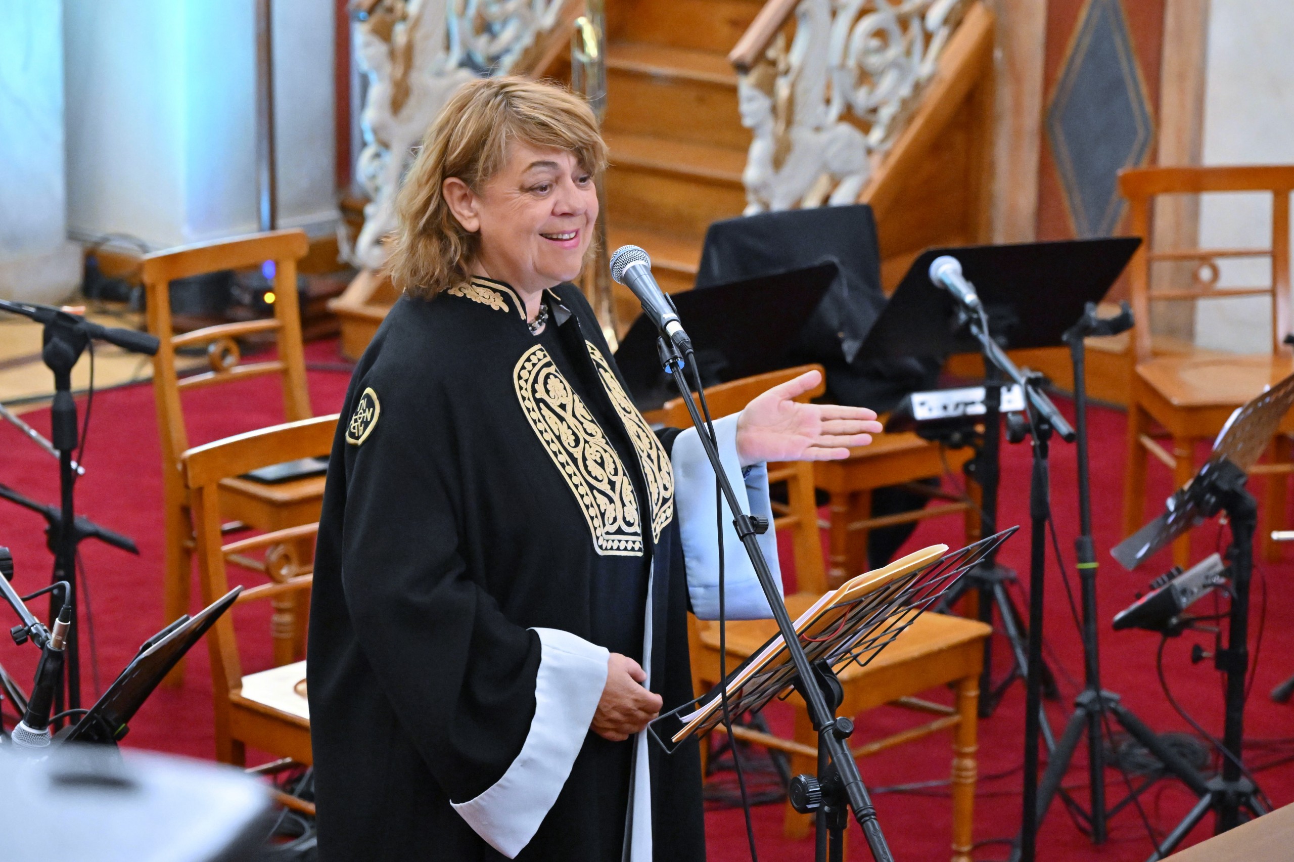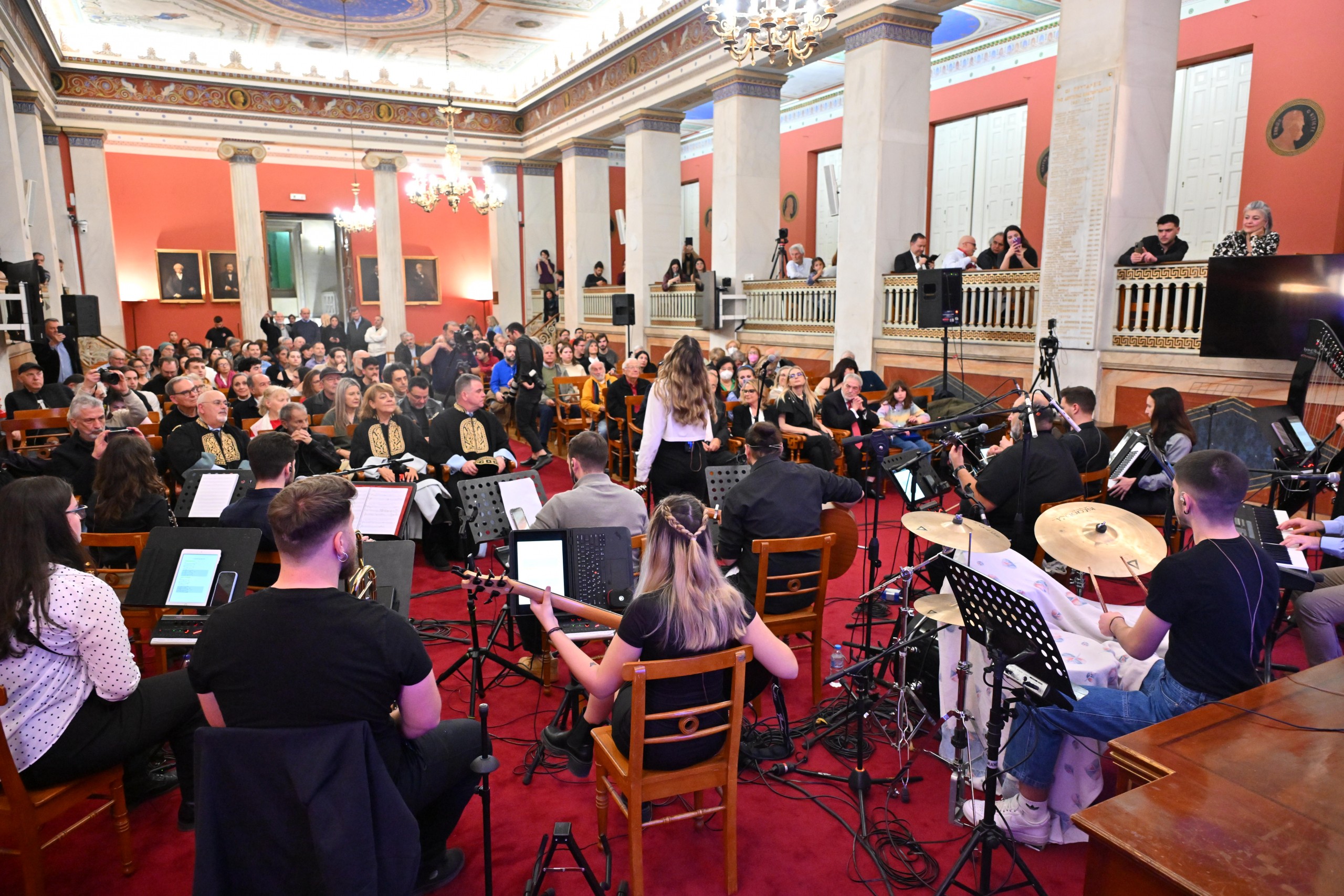 Ακολούθησε χαιρετισμός από την Πρόεδρο του Τμήματος Μουσικών Σπουδών της Φιλοσοφικής Σχολής του Πανεπιστημίου Αθηνών, καθηγήτρια Αναστασία Γεωργάκη.
