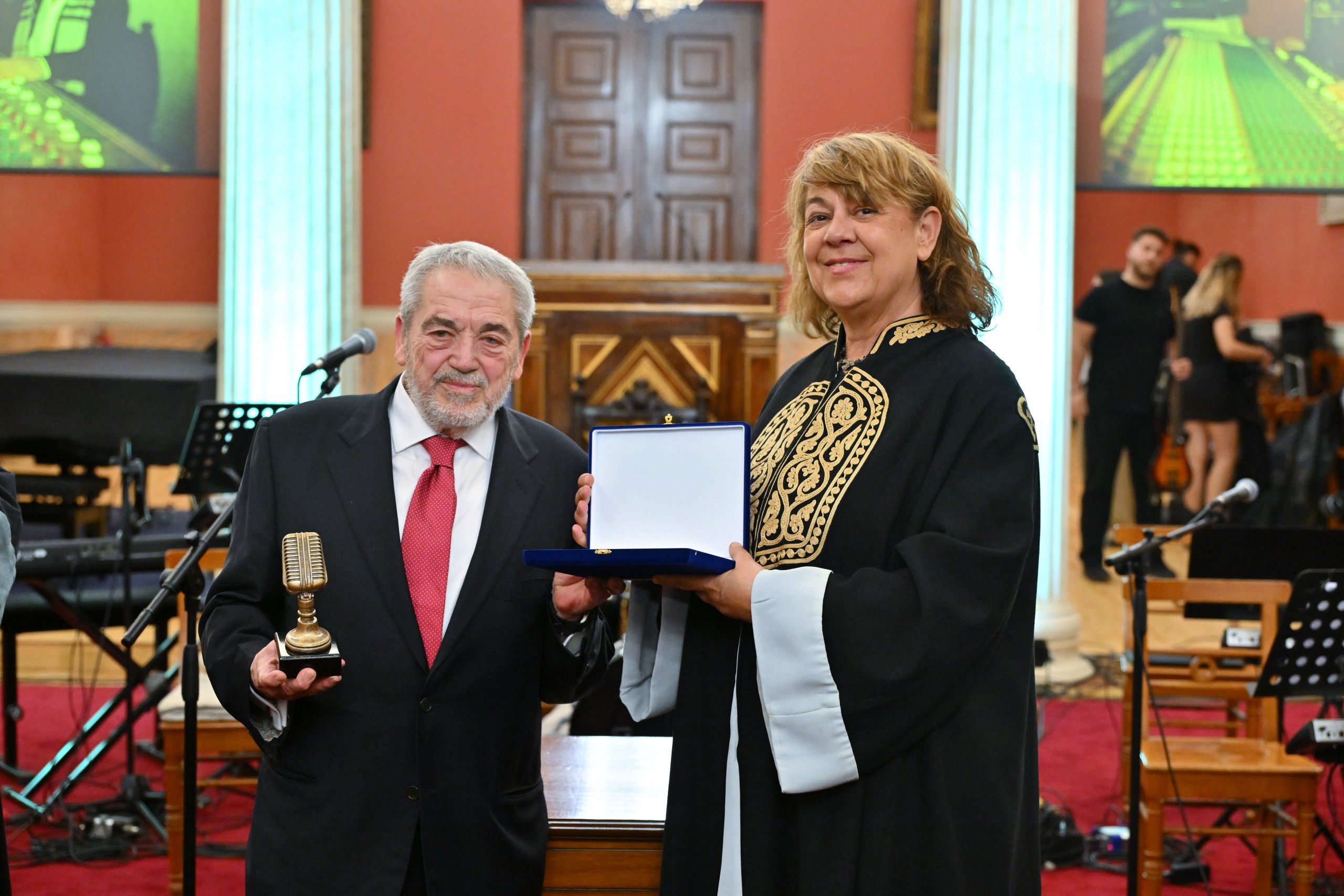 Στη συνέχεια έγινε παρουσίαση του έργου των τιμωμένων από τον καθηγητή Εθνομουσικολογίας του Τμήματος Μουσικών Σπουδών της Φιλοσοφικής Σχολής του Πανεπιστημίου Αθηνών, κ. Λάμπρο Λιάβα.