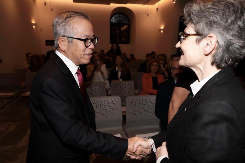 Η Α.Ε. ο Πρέσβης της Ιαπωνίας, κ. Koichi Ito συνόψισε τη λειτουργία του προγράμματος σε 69 πανεπιστημιακά ιδρύματα σε όλο τον κόσμο και ειδικότερα στο ΕΚΠΑ και εξέφρασε την ευγνωμοσύνη του για τη συνεισφορά των μελών της Επιτροπής Sylff στην απρόσκοπτη λειτουργία του προγράμματος. Ο Πρέσβης εξήρε τα επιτεύγματα των αποφοίτων Sylff του ΕΚΠΑ, πολλοί/ές εκ των οποίων έχουν αναλάβει ηγετικούς ρόλους στη δημόσια ζωή ή διαπρέπουν στον ακαδημαϊκό χώρο. Ο Πρέσβης αναφέρθηκε και σε άλλες συνεργασίες μεταξύ της Ιαπωνίας και της Ελλάδας σε ακαδημαϊκό και πολιτιστικό επίπεδο, όπως για παράδειγμα, στα προγράμματα ανταλλαγής μεταξύ του ΕΚΠΑ και του Keio University. Η Α.Ε. ο Πρέσβης κ. Koichi Ito έκλεισε την ομιλία του τονίζοντας τη θεμελιώδη σημασία των ακαδημαϊκών και πολιτιστικών συνεργασιών για την αμοιβαία κατανόηση, τη συνεργασία και τη φιλία μεταξύ των εθνών. Μετά το τέλος της ομιλίας του Ιάπωνα Πρέσβη αναγνώστηκε χαιρετισμός της κυρίας Mari Suzuki, Executive Director for Leadership Development, Tokyo Foundation for Policy Research.