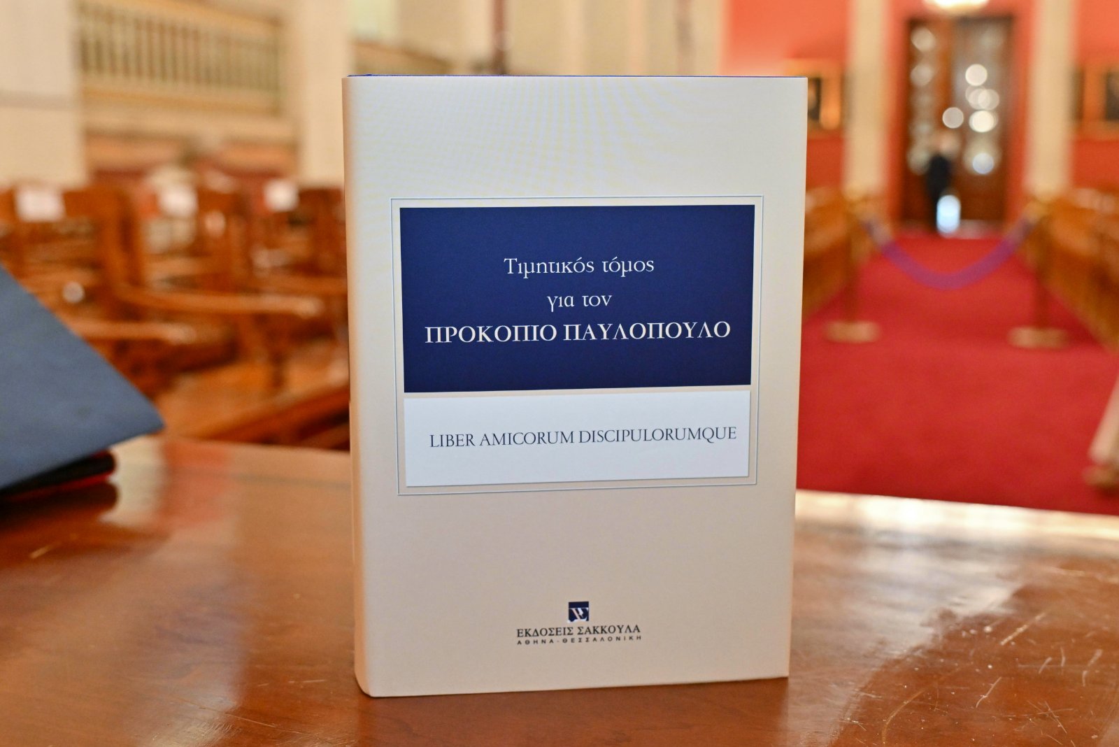 Πραγματοποιήθηκε την Πέμπτη, 24 Οκτωβρίου 2024, ώρα 19.00 στη Μεγάλη Αίθουσα του Πανεπιστημίου Αθηνών (κεντρικό κτήριο, Πανεπιστημίου 30), η τελετή επίδοσης του τιμητικού τόμου με τίτλο «LIBER AMICORUM DISCIPULORUMQUE» στον τ. Πρόεδρο της Δημοκρατίας Ακαδημαϊκό και Επίτιμο Καθηγητή του Πανεπιστημίου Αθηνών Προκόπιο Παυλόπουλο.