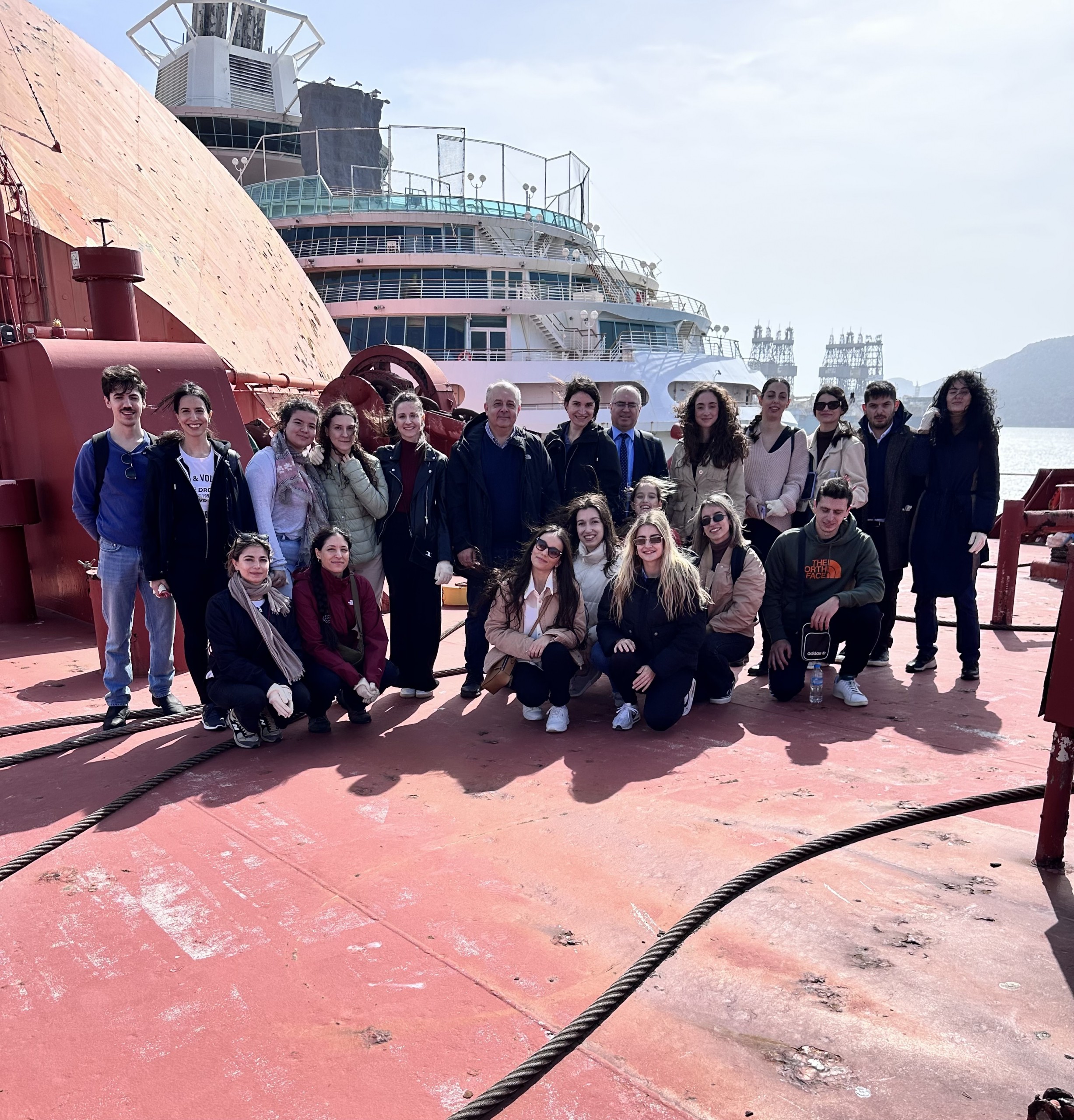 Στο πλαίσιο του Μνημονίου Συνεργασίας μεταξύ της Νομικής Σχολής Αθηνών και της Διεθνούς Ένωσης Αλληλασφαλιστικών Οργανισμών (IG P&I Clubs), πραγματοποιήθηκε την Πέμπτη 13/3/2025 επίσκεψη φοιτητών του ΠΜΣ Ναυτικού Δικαίου και εκπροσώπων του The American Club στο πρώτο παγκοσμίως πλοίο τύπου FSRU (Μονάδα Αποθήκευσης και Επαναεριοποίησης Υγροποιημένου Φυσικού Αερίου), το οποίο σήμερα βρίσκεται παροπλισμένο στην Ελευσίνα.