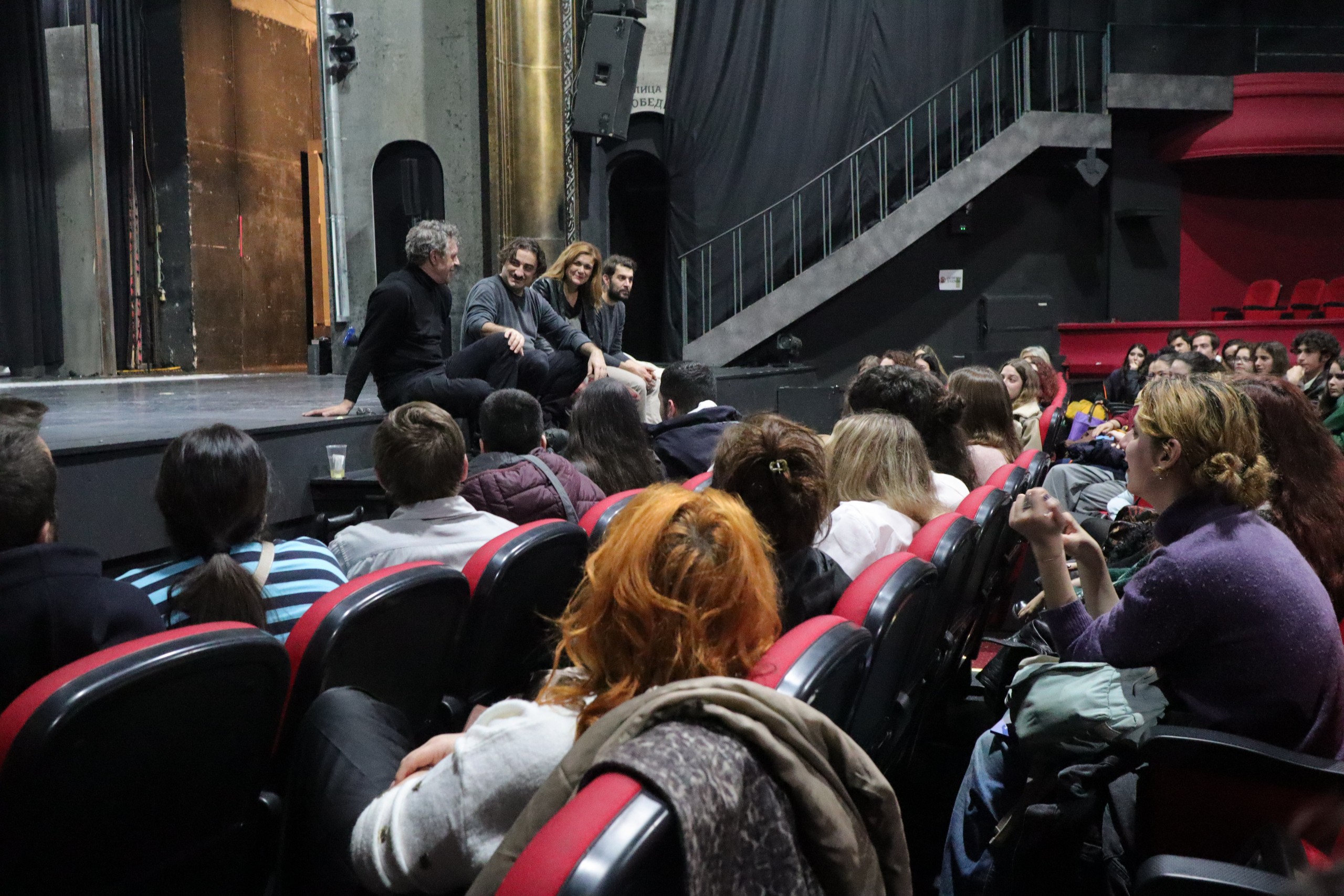 Ολοκληρώθηκε με επιτυχία η καλλιτεχνική συνάντηση που διοργάνωσε η επίκουρη καθηγήτρια του Τμήματος Θεατρικών Σπουδών του Εθνικού και Καποδιστριακού Πανεπιστημίου Αθηνών, κα Ελίνα Νταρακλίτσα, την 10η Ιανουαρίου 2025 στο ιστορικό Θέατρο Ακροπόλ. Οι φοιτητές του τμήματος Θεατρικών Σπουδών και οι ηθοποιοί Βασίλης Χαραλαμπόπουλος, Γιάννης Τσορτέκης και Αλεξάνδρα Αϊδίνη, συνευρέθησαν καλλιτεχνικά ανοίγοντας τον δρόμο σε έναν γόνιμο διάλογο με θέμα τη σύγχρονη δραματολογία, τη θεατρική διασκευή και την ερμηνευτική-σκηνική απόδοση των πολυσήμαντων ρόλων.