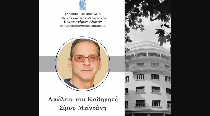 Mε βαθιά θλίψη ανακοινώνεται η ξαφνική απώλεια του Καθηγητή Σίμου Μεϊντάνη. Το Τμήμα Οικονομικών Επιστημών εκφράζει ολόψυχα τη συμπαράσταση και τα θερμά συλλυπητήρια στην οικογένεια του εκλιπόντος.