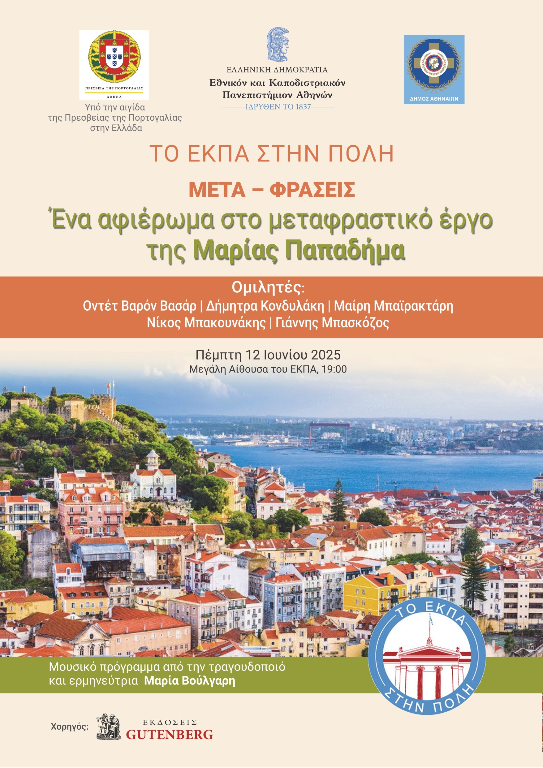 Μία εκδήλωση αφιερωμένη στο μεταφραστικό έργο της καθηγήτριας του Τμήματος Γαλλικής Γλώσσας και Φιλολογίας της Φιλοσοφικής Σχολής του Εθνικού και Καποδιστριακού Πανεπιστημίου Αθηνών Μαρίας Παπαδήμα.