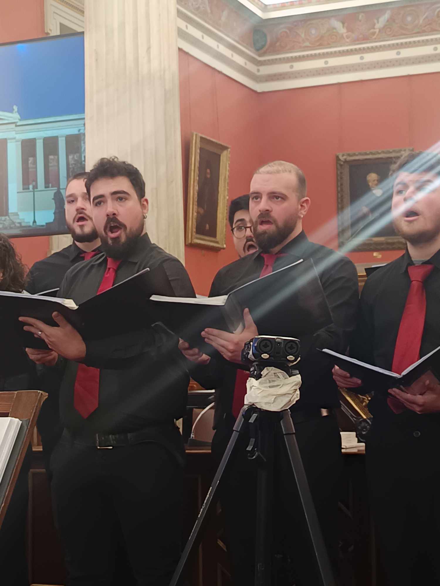 Τέλος, η Μικτή Χορωδία Αποφοίτων της Λεοντείου Σχολής Αθηνών “Vox Fortis”, με μαέστρο τον κ. Βασίλη Γιώτη, έντυσε μουσικά την εκδήλωση και κέρδισε το δυνατό χειροκρότημα του κοινού.