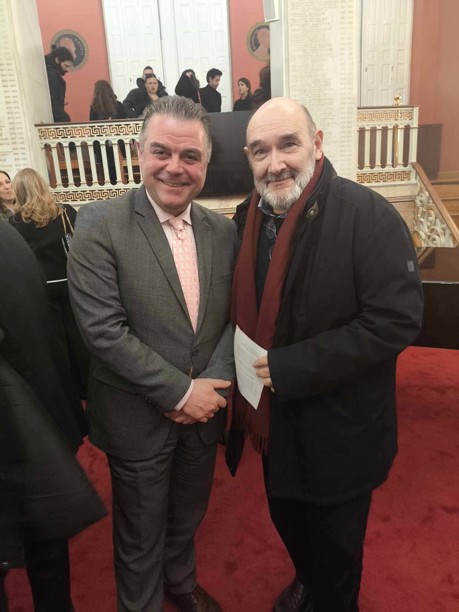 Ο Δήμαρχος Αθηναίων, κ. Χάρης Δούκας, χαιρέτισε ένθερμα την εκδήλωση και επέδωσε τιμητική πλακέτα στον ποιητή εκ μέρους του Δήμου Αθηναίων.