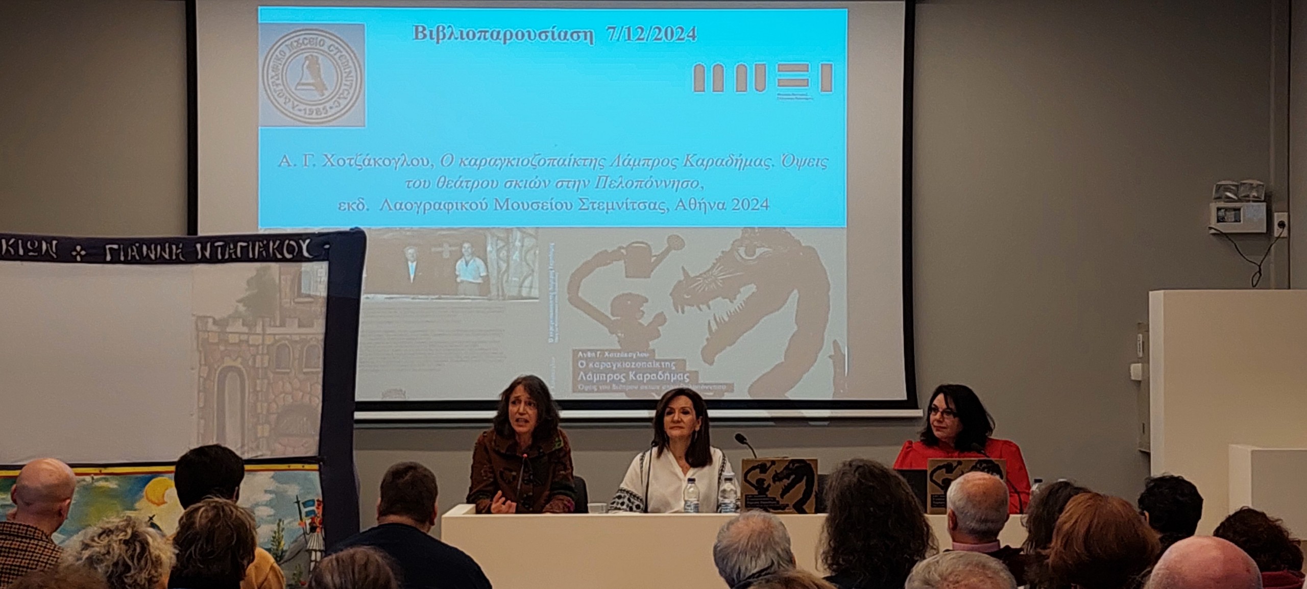 Με μεγάλη επιτυχία πραγματοποιήθηκε το Σάββατο 7 Δεκεμβρίου 2024 εκδήλωση, με επίκεντρο την παρουσίαση της νέας έκδοσης του Λαογραφικού Μουσείου Στεμνίτσας, «Ανθής Γ. Χοτζάκογλου, Ο καραγκιοζοπαίκτης Λάμπρος Καραδήμας. Όψεις του θεάτρου σκιών στην Πελοπόννησο, Αθήνα 2024». Η εκδήλωση, που φιλοξενήθηκε στο Μουσείο Νεότερου Ελληνικού Πολιτισμού (ΜΝΕΠ), αποτέλεσε δείγμα συνεργασίας των δύο μουσείων και των επικεφαλής τους, κ.κ. Ελένη Τσίρου και Ελένη Μελίδη.